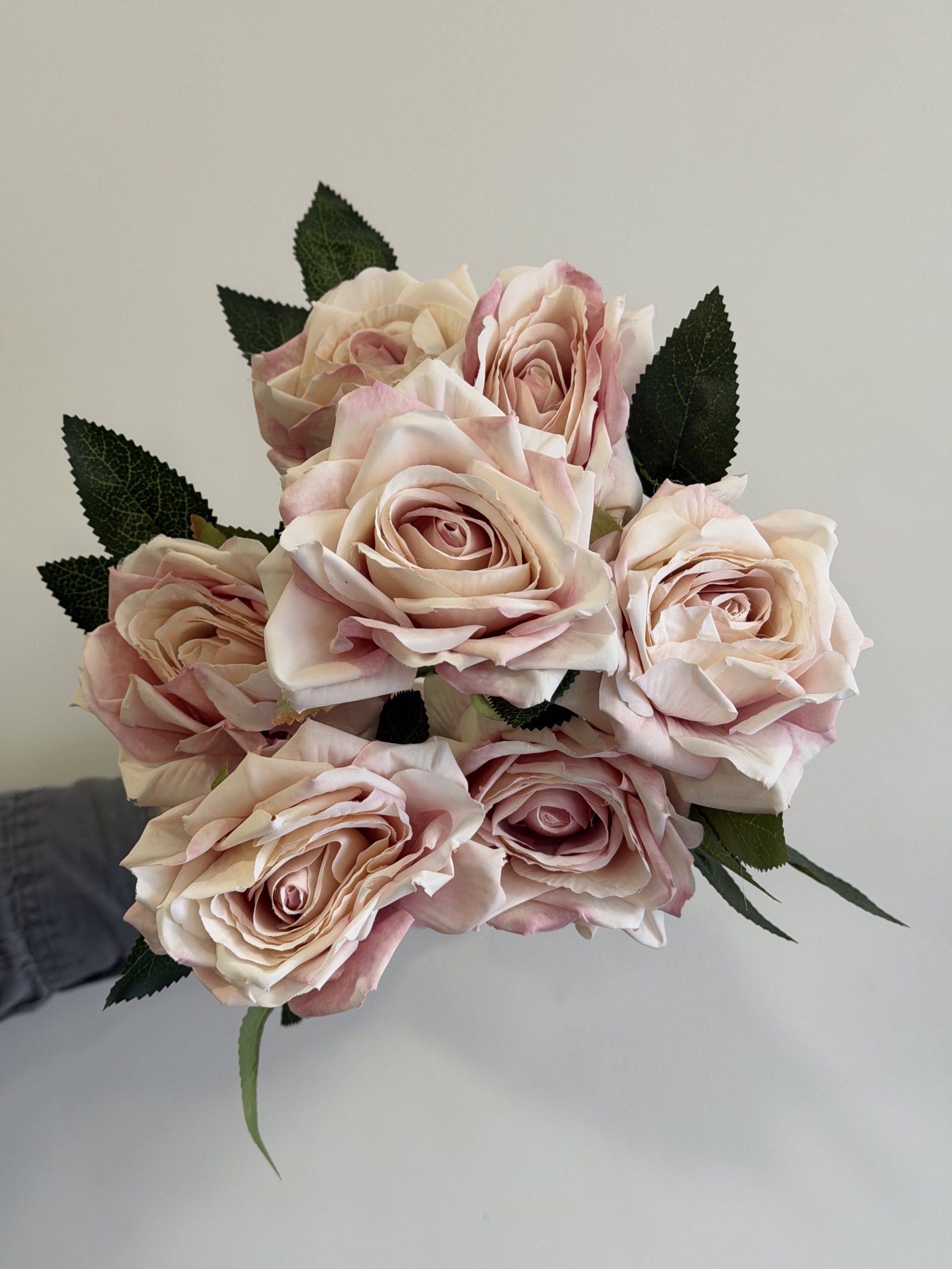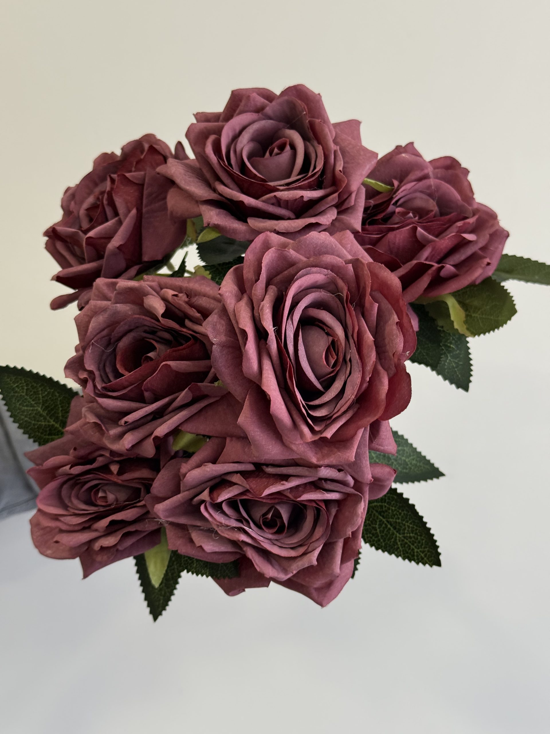 Buket veštačkih ruža u prelepim bojama. Buket sadrži 7 ruža sa lišćem.