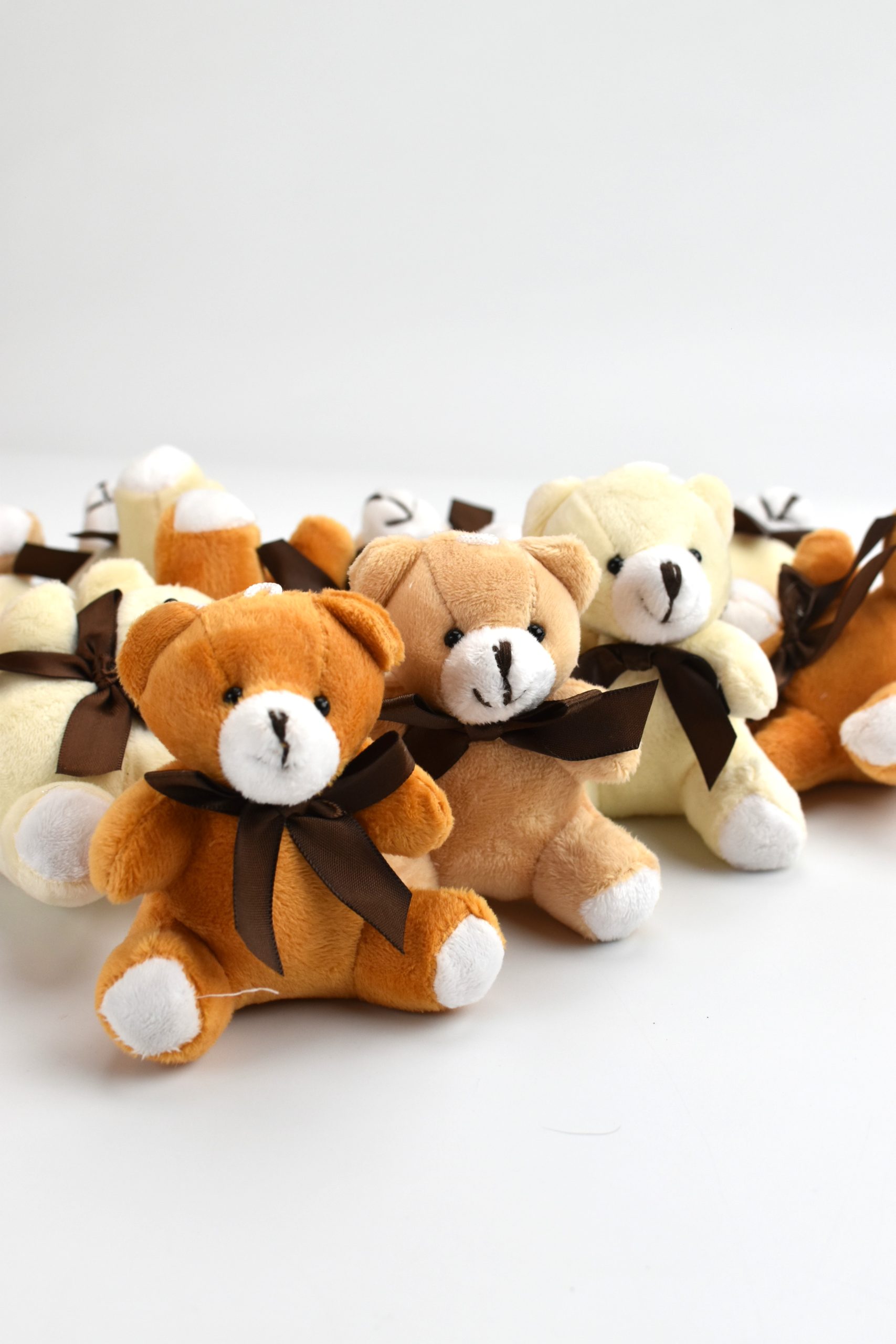 Plišane mede u pakovanju od 12 kom. Pakovanje sadrži po 4 mede u 3 različite boje.