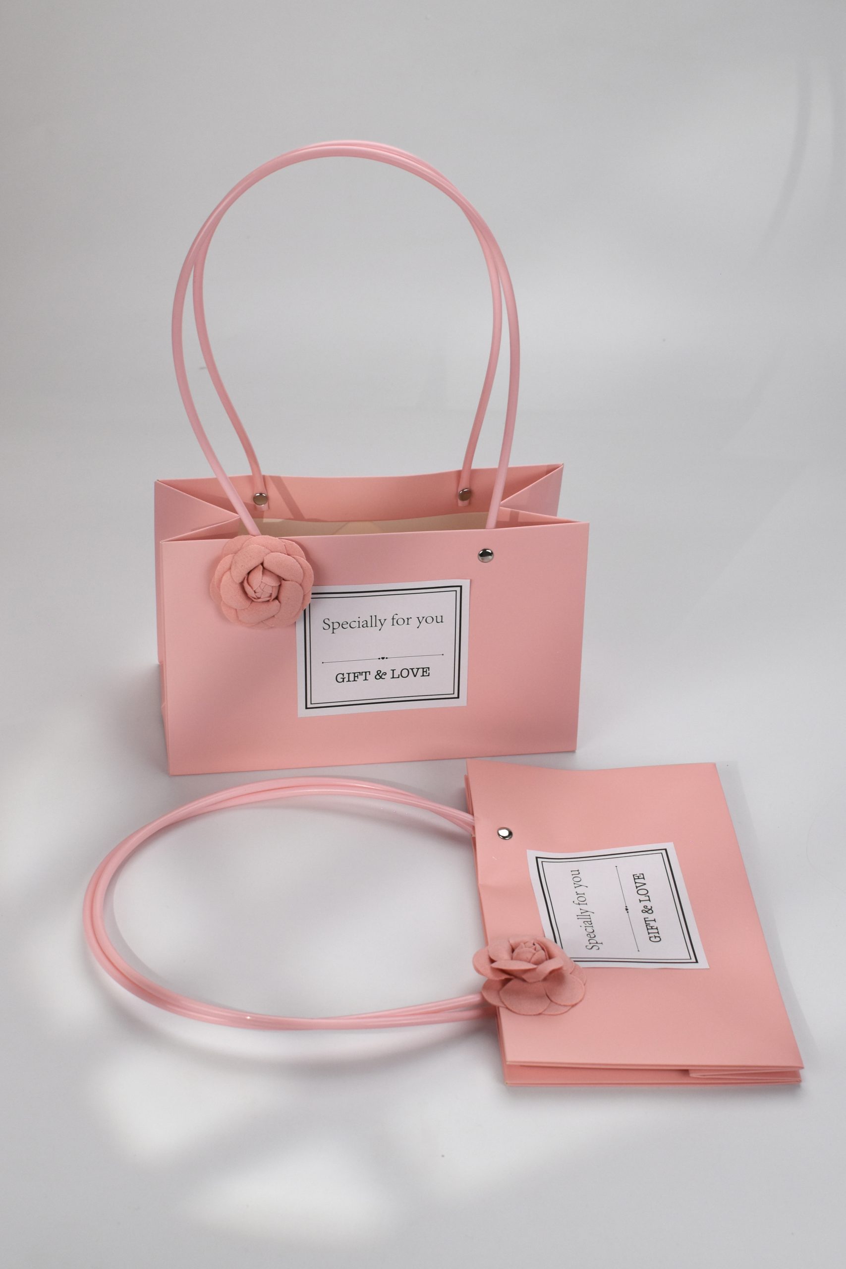 Kartonska torbica za cveće sa motivom ruže.